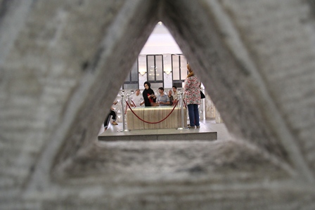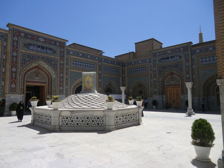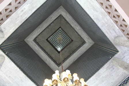 درب مسجد باز است ، وضو می گیریم و نمازی می خوانیم ، برعکس نمای درب ورودی مسجد معماری داخل آن بی روح و فاقد اسلوب مذهبی اسلامی است .