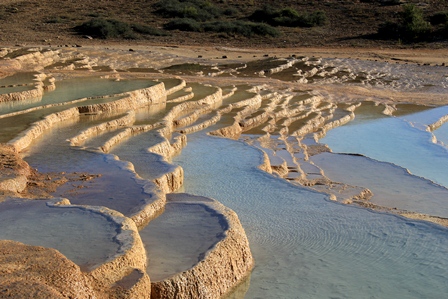 به گفته دانشمندان این زیباترین چشمه پکانی جهان است و حدود 200 سال طول می کشد تا یک پلکان رسوبی 10 سانتی از این حوضچه ها تشکیل شودآب آن هم مربوط به عصر یخبندان است
